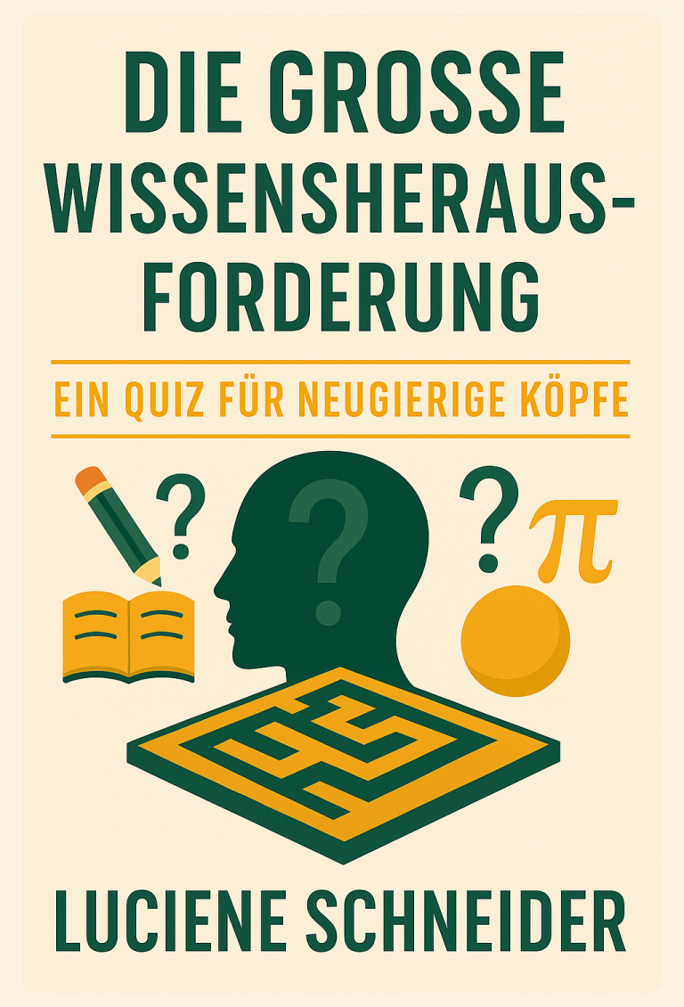 Die große Wissensherausforderung – Ein Quiz für neugierige Köpfe ist ein unterhaltsames und lehrreiches Buch, das Leserinnen und Leser auf eine spannende Reise durch verschiedenste Wissensgebiete mitnimmt. Es enthält eine Vielzahl an Quizfragen aus Bereichen wie Geschichte, Wissenschaft, Geografie, Kunst, Literatur, Musik, Popkultur und Logik – ideal für alle, die ihr Allgemeinwissen testen oder erweitern möchten.